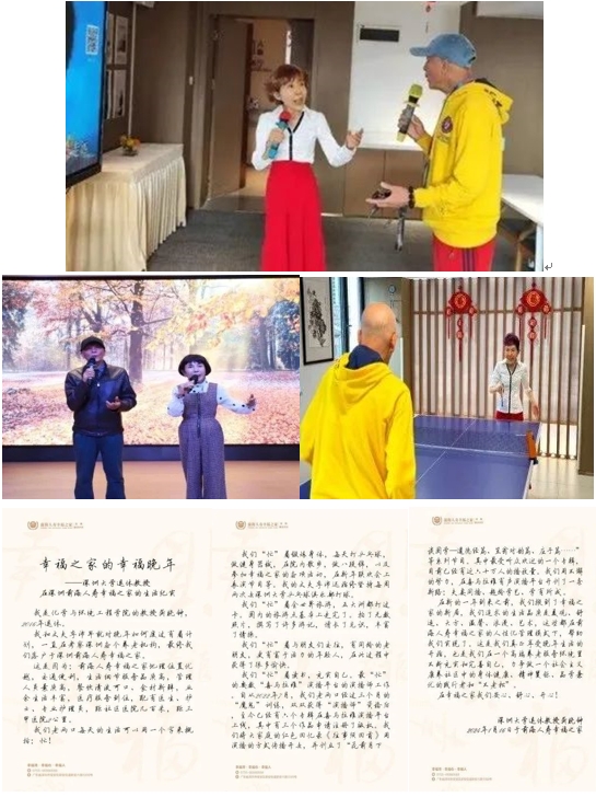 据悉,截至目前我校已有六位老同志入住深圳泰康之家鹏园。还有部分老同志根据个人实际情况,选择了任达石岩护理院、招商颐业、龙城医院、前海颐居、前海人寿幸福之家等相关养老机构入住。离退休办将结合我校老同志实际情况,将全方位、多层次地继续加大精准服务力度,丰富大家的养老选择,助力老同志能找到自己喜欢的、适合自己的养老归宿,安享幸福晚年。现应入住社会养老机构部分老师们的愿望,我们会陆续将他们在各级养老机构的幸福生活进行分享。希望热爱生活的长者尽情享受生活的乐趣,开启人生新旅程。 本期分享我校退休教师龚晓钟教授和先生李沛老师在前海人寿幸福之家的享老生活,她提到关于晚年生活的见解:“人生如梦,岁月如歌。在漫长的人生旅途中每个人都有自己不同的生活方式。前海人寿幸福之家的新居,是真正享受晚年生活的开始,希望在幸福的晚年生活中不断充实和完善,力争做社会主义康养社区中的身体健康、精神矍铄、品学兼优的践行者。