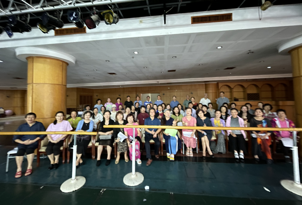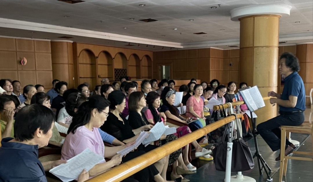 首次排练有近50位老师参加,老师们相见无比兴奋,共叙情谊,现场气氛热烈,大家感谢学生部为秋韵艺术合唱团的排练提供了活动场所。在合唱团指挥王昌逵老师、声乐指导叶桂兰老师的指导下,大家进行了声乐训练和合唱作品《不忘初心》的排练。