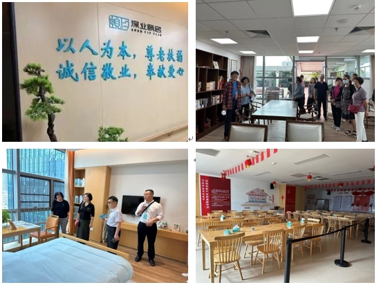 10月24日,参观的老师们到达综合性养老机构-深业颐居后,在工作人员引领下参观了样板间、园区、娱乐活动区、康复理疗室、饭堂、康体中心等区域。