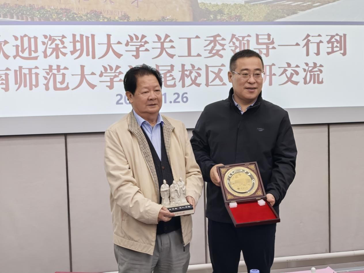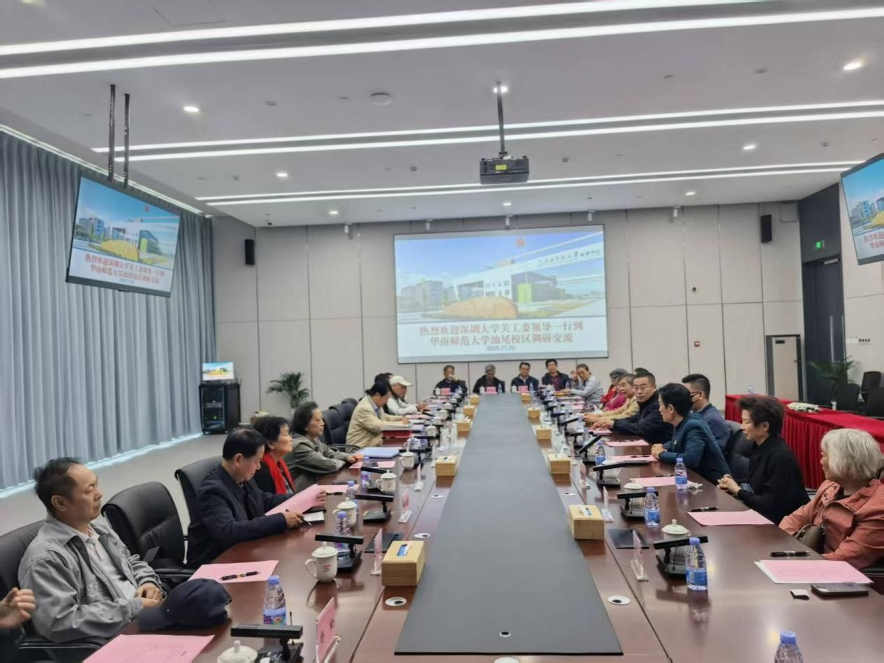 26日上午,学校关工委队伍来到华南师范大学汕尾校区(以下简称汕尾校区),受到汕尾校区党委副书记、管委会常务副主任徐向龙,党委副书记、行知书院副院长唐小煜,党委副书记、纪委书记、管委会副主任汪锡鑫等的热情接待。在该校区图书馆4楼,深大关工委委员们听取徐向龙副书记介绍汕尾校区的筹建、招生、学科设置、人才培养和校园建设的情况,然后到图书馆102会议室,双方进行交流。徐向龙副书记说:华师汕尾校区与深圳大学有很深的缘分,深圳大学参与汕尾校区的筹办、建设,校园规划也是由深大建筑设计学院设计的,现在有一批深大的学术骨干在汕尾校区担任院长等职务,为校区的人才培养和学科发展做出很大贡献。
