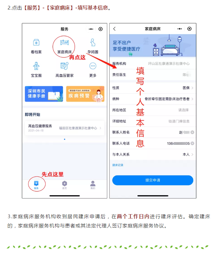 在深圳,符合条件的患者可通过“社康通”小程序申请家庭病床。