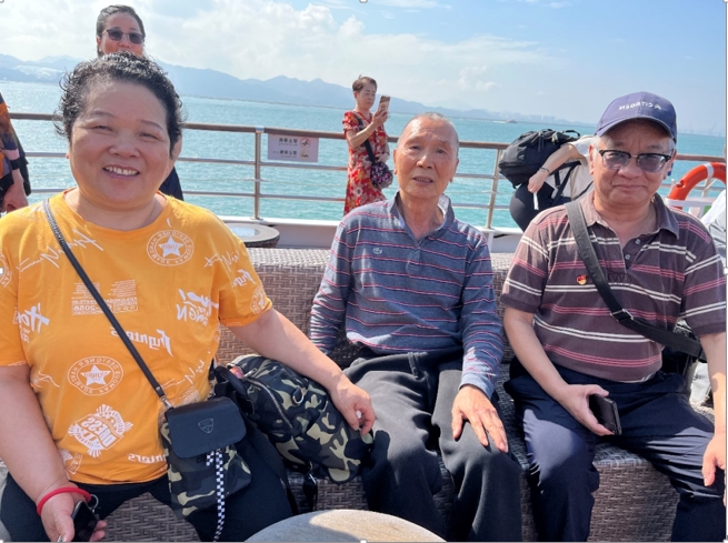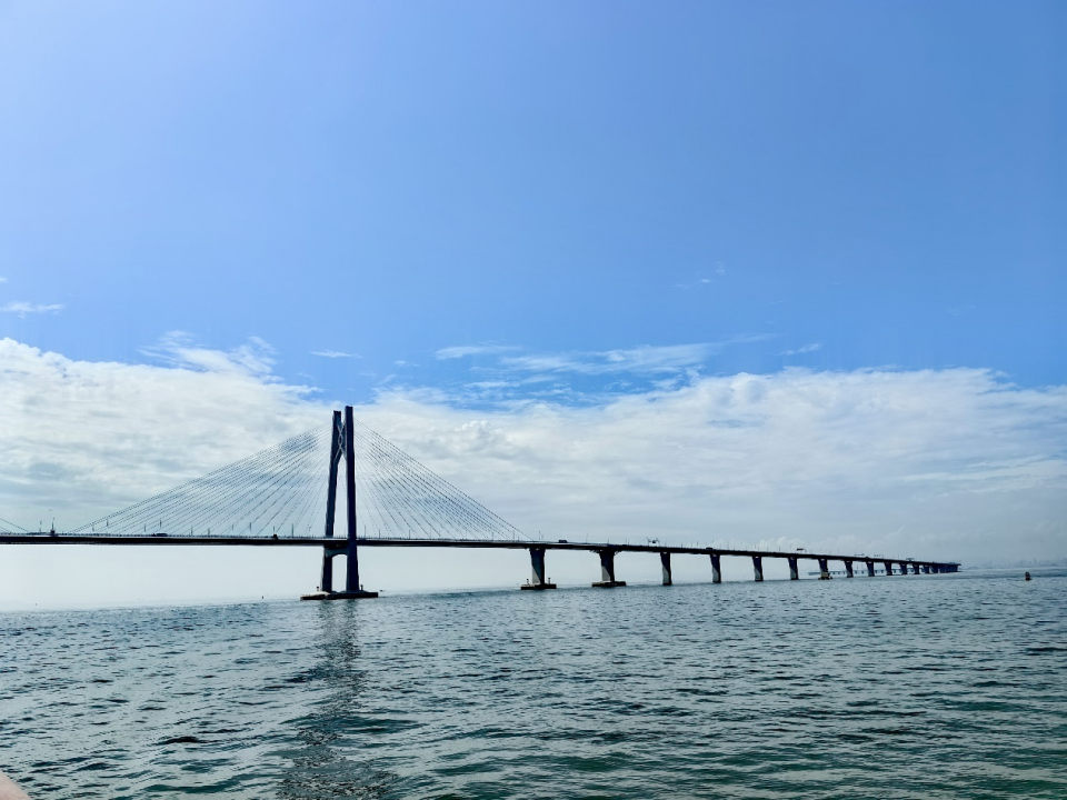 大家乘船参观了港珠澳大桥,游船缓缓走近宛如“海上天路”的大桥,老师们在船上从远至近目睹了这座拥有多项世界之最的工程,深感震撼,心潮澎湃,不断地赞叹祖国的发展速度,并对中国工程师和中国工人油然而生一种敬服之情。