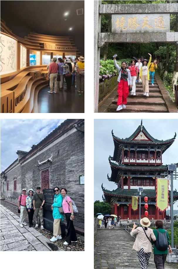 老师们先后游览了江南宋城历史文化旅游区、阳明湖,通天岩、龙南世界客家民俗文化城等特色景区,深度感受赣州文化的魅力,体验赣南地区独特的风土人情。在江南宋城历史文化旅游区,老同志们沿着古城墙参观八境台、登上郁孤台体悟千年宋城古韵;在关西围屋,老师们参观了赣南客家围屋中建筑面积最大、保存最完好、功能最齐全、最具代表性的客家民居,感悟客家文化的恒久流传,体验客家喜宴的独特魅力;在通天岩景区沉浸感受秀美的自然风光和深厚的人文底蕴。在福寿沟博物馆,了解了赣州福寿沟的修建背景、系统构造、运行原理等,感受赣州先民的智慧与工匠精神,见证古代水利史上的奇迹。