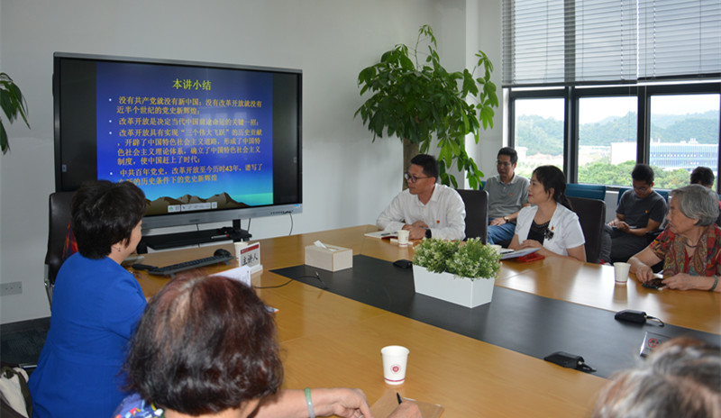 丽湖校区管理办公室阮彬主任对本次党课进行了总结,他表示,吴俊忠教授的党课围绕改革开放这一重要的历史时期,充分联系实际、深入浅出,既有高度,又有深度,令人受益匪浅。同时,他对离退休老同志对学校丽湖校区的关心表示衷心感谢,邀请老同志们会后参观丽湖校区二期建设,希望老同志们一如既往地支持、关注学校发展建设,为丽湖校区建设发展提出宝贵意见和建议。