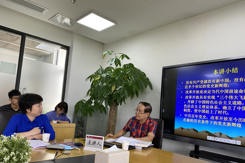 吴俊忠教授是我校党史学习教育宣讲团成员,本次党课以“改革开放谱写党史新辉煌”为题,阐述了改革开放在百年党史中的重要意义,坚定了大家始终支持深圳建设中国特色社会主义先行示范区、扛起新时代历史使命的理想信念。他还指出,党的纪律是改革开放顺利进展的强大保证,大家要严格自觉遵守党员廉洁自律规范,立足岗位、履行职责,真正做到坚守底线、不越红线。