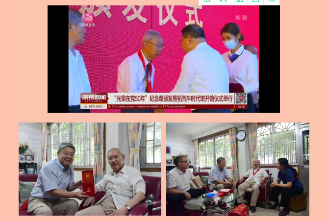 根据学校组织部统一部署安排,今年对党龄50年及以上老党员的颁发纪念章和慰问工作,由老党员原单位(各学院、各部室)联系后,根据各位老党员实际情况进行。