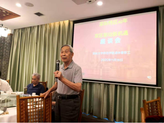 2020年11月16日,在市民中心“客家围拢屋”,师院退休教工党支部与师院片区退休教师成功举行了“特区四十年,双区驱动新机遇”座谈会,有57人参加了座谈会,其中党员教师26人,年龄最大的88岁,这是今年疫情发生之后师院退休教工的第一次活动,座谈会上满头白发的老教师和老领导争先恐后地发言,气氛十分热烈,展示了疫情过后老同志对新时代新生活的向往,对深圳大学的建设成就充满了美好的憧憬,座谈会取得了非常圆满的成功。