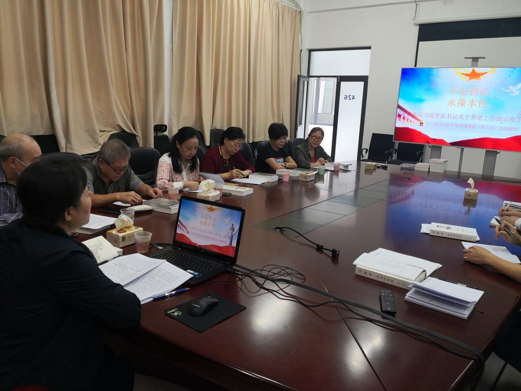王书记以“不忘初心,永葆本色,积极践行习近平总书记关于养老工作指示批示精神”为题,首先结合习近平总书记关于养老工作指示批示精神,论述了学习《习近平谈治国理政》第三卷的重要意义,提出离退休党员要关心时事,加强政治理论学习,紧跟党的路线方针政策,做到思想上不“退休”。同时围绕新时代养老服务工作,介绍了居家社区机构相协调、医养康养相结合的养老服务体系,强调离退休党员要关爱自己,积极强身健体,尝试多样化养老服务模式,把退休生活过得丰富多彩。王书记在学习中也传达了党委书记刘洪一和校长李清泉的讲话精神,勉励离退休党员要弘扬深大精神,奉献余热,为创建世界一流创新型大学贡献自己的力量。