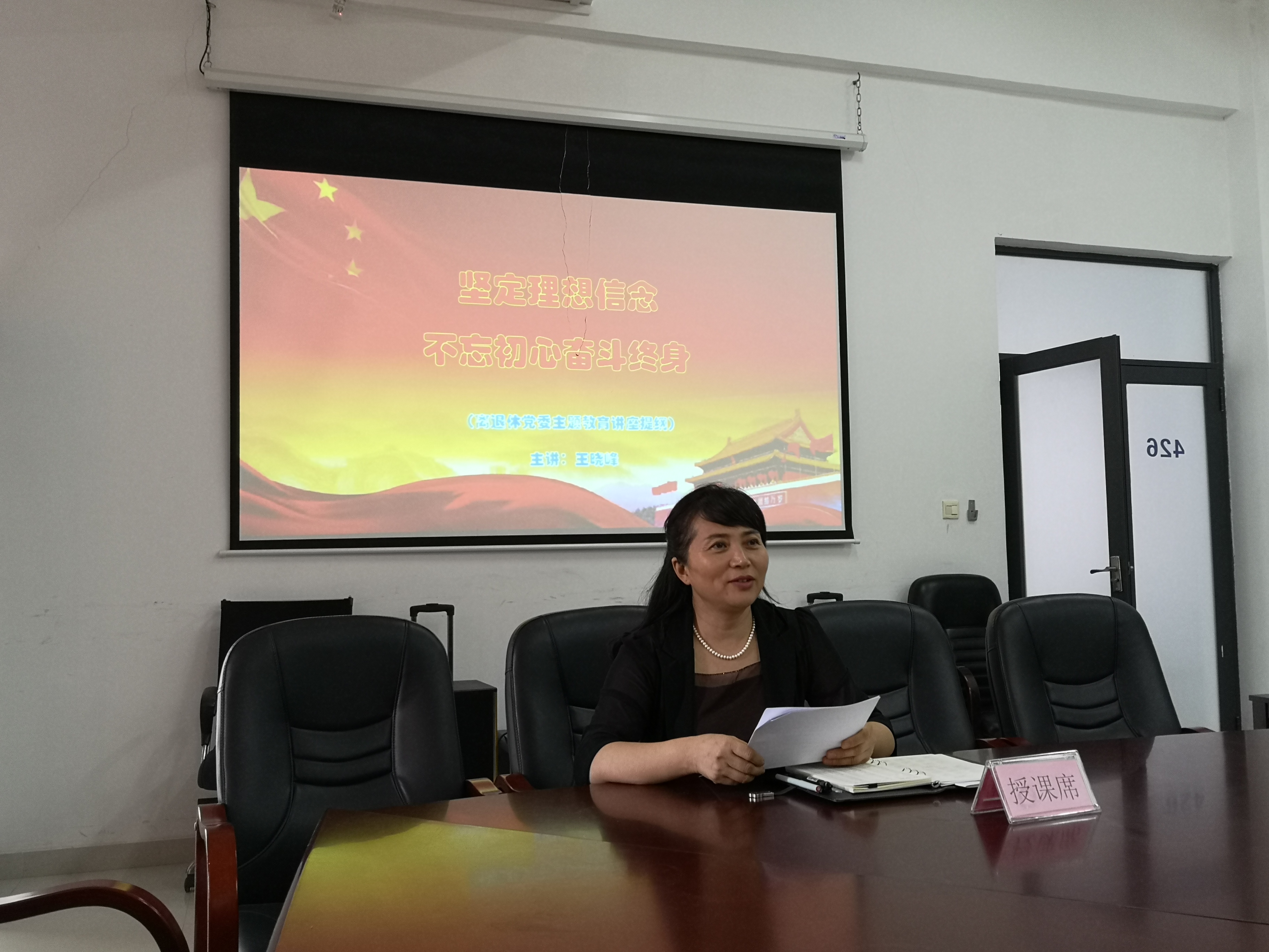 为深入开展“不忘初心、牢记使命”主题教育,根据实施方案,10月24日上午,离退休党委在综合楼426会议室开展了“不忘初心、牢记使命”主题教育党课学习会议。会议有两项内容,一是离退休党委书记王晓峰同志作了题为《坚定理想信念,不忘初心奋斗终身》专题党课授课,二是离退休党委委员吴俊忠教授党史专题讲座《从井冈山到西柏坡》,离退休党委理论中心学习组同志参加了学习。