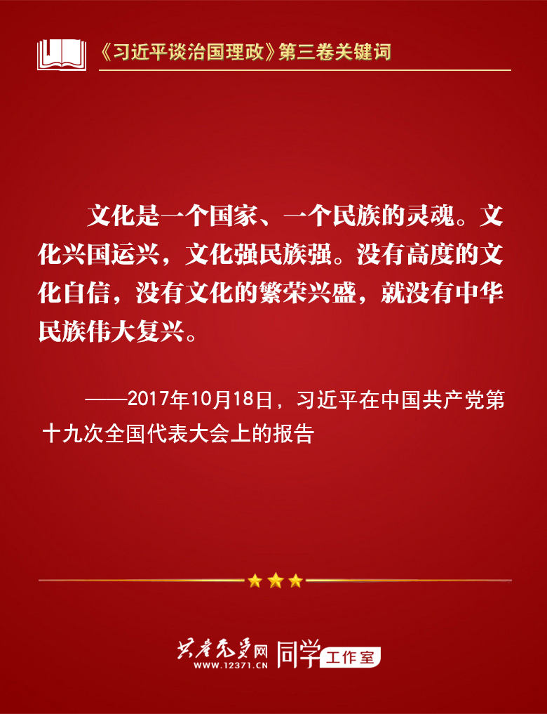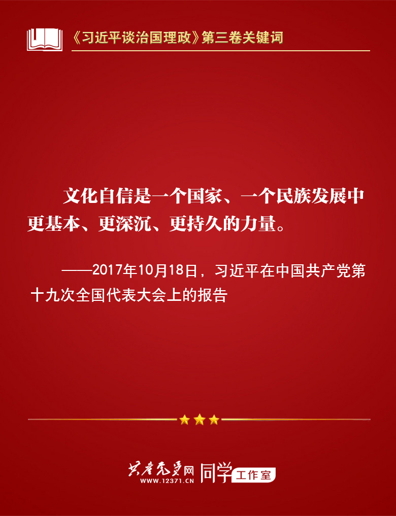 我们梳理习近平总书记部分讲话,带你学习著作中的关键词。今天的关键词是“文化自信”。