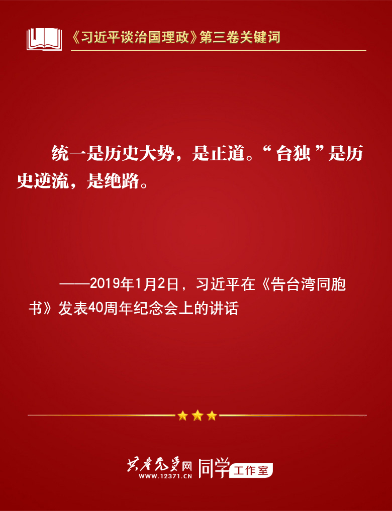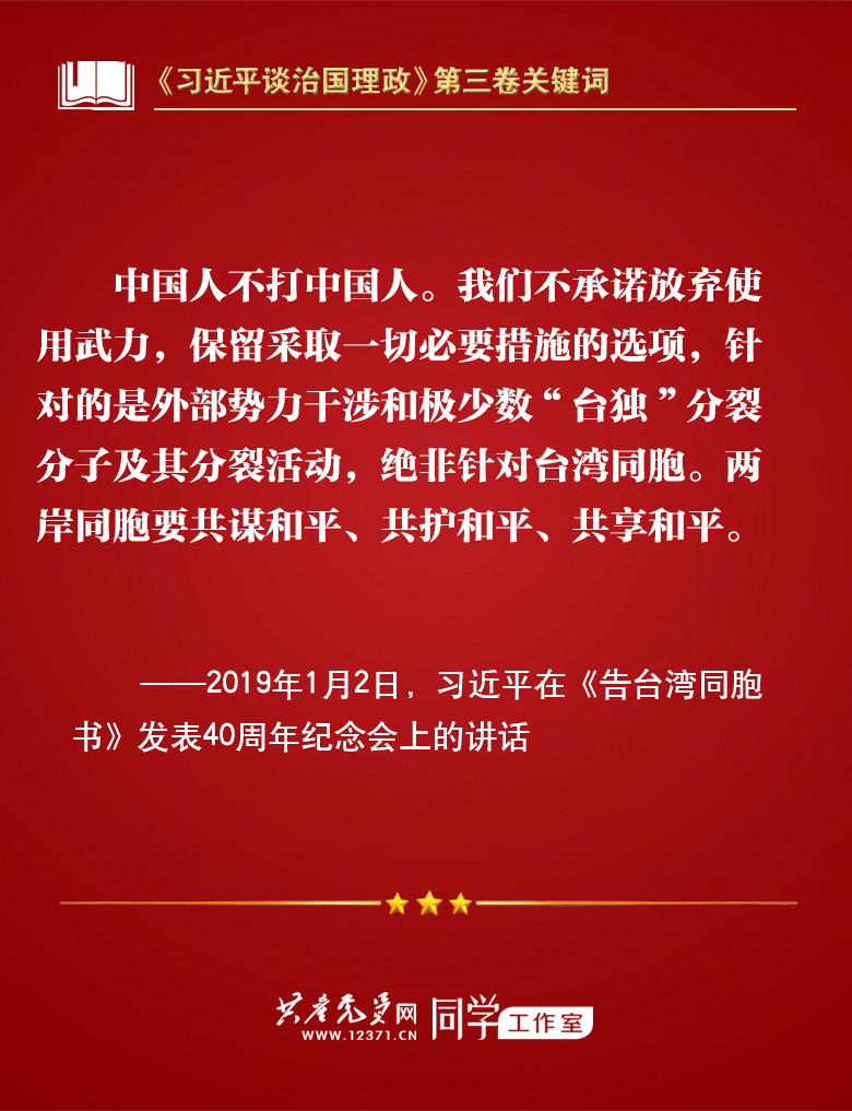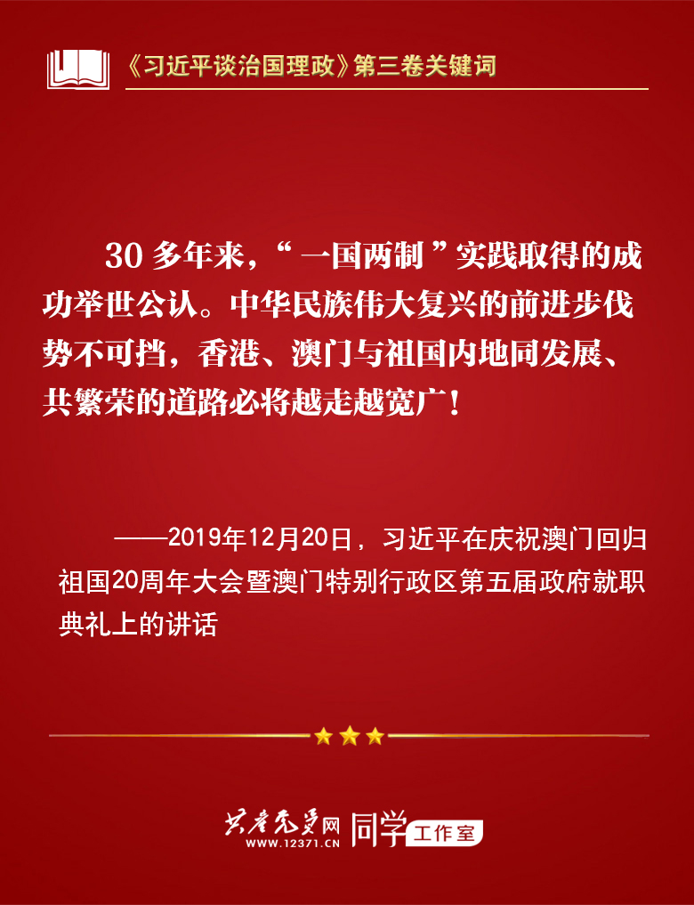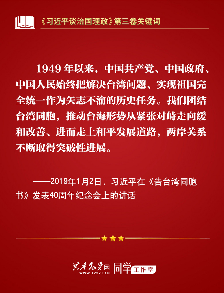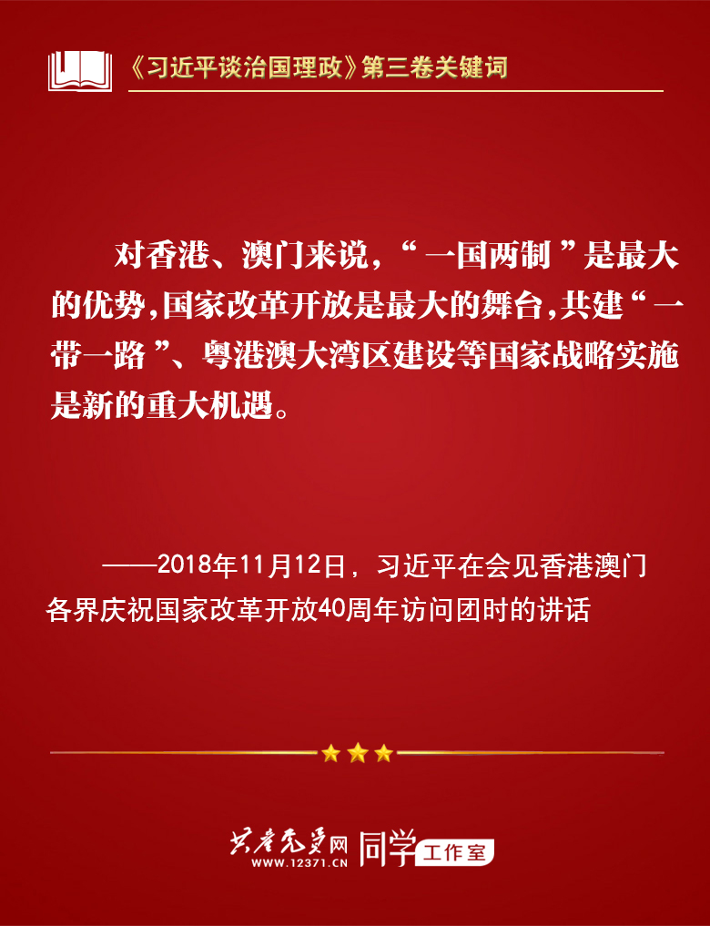 我们梳理习近平总书记部分讲话,带你学习著作中的关键词。今天的关键词是“一国两制、和平统一”。