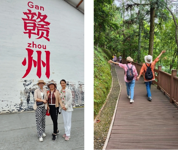 老师们先后游览了江南宋城历史文化旅游区、阳明湖,通天岩、龙南世界客家民俗文化城等特色景区,深度感受赣州文化的魅力,体验赣南地区独特的风土人情。在江南宋城历史文化旅游区,老同志们沿着古城墙参观八境台、登上郁孤台体悟千年宋城古韵;在关西围屋,老师们参观了赣南客家围屋中建筑面积最大、保存最完好、功能最齐全、最具代表性的客家民居,感悟客家文化的恒久流传,体验客家喜宴的独特魅力;在通天岩景区沉浸感受秀美的自然风光和深厚的人文底蕴。在福寿沟博物馆,了解了赣州福寿沟的修建背景、系统构造、运行原理等,感受赣州先民的智慧与工匠精神,见证古代水利史上的奇迹。