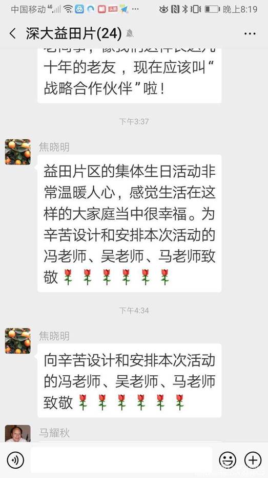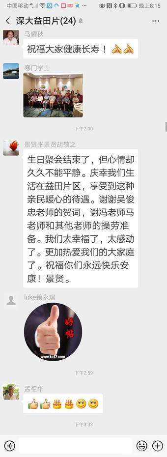 活动结束后,大家怀着激动的心情在片区群中留言,真挚简朴的言语感人肺腑。珍惜大家相聚的日子,祝大家天天快乐,健康长寿!