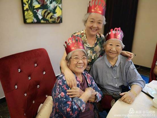 “80”后安金顺、薛淑婉老师和“70”张爱卿老师,寿星三姐妹开心灿烂的笑容。