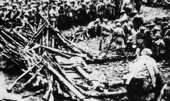 围场战斗后,解放军正在清点缴获的武器。
