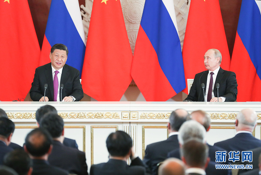 新华社莫斯科6月5日电(记者范伟国 霍小光 刘畅)国家主席习近平5日在莫斯科克里姆林宫同俄罗斯总统普京会谈。两国元首高度评价建交70年来双边关系发展,一致同意秉持睦邻友好、合作共赢理念,发展中俄新时代全面战略协作伙伴关系,将两国关系提升到更高水平,更好惠及两国人民和世界人民。