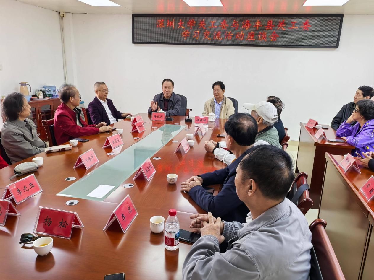 参观完红宫红场之后,大家来到海丰县关工委参观与交流。在座谈会上,海丰县关工委陆得源主任介绍了他们开展关心下一代工作的情况,深大关工委梁桂麟副主任对海丰县关工委今年获得国家先进关工委称号表示热烈祝贺,表示要学习海丰县关工委的好经验,并简要介绍深大关工委的情况。杨移贻秘书长介绍了深大关工委开展创建“五好”关工委的做法,重点介绍5个“五老工作室”的设置和积极创新关心下一代工作的情况。红色音乐工作室王昌逵主任和青少年AI培训工作室欧阳康主任介绍了各自工作室开展关心下一代工作的情况,并表示与海丰县关工委开展合作的意向,受到海丰县关工委和海丰县教育局关工委的欢迎。