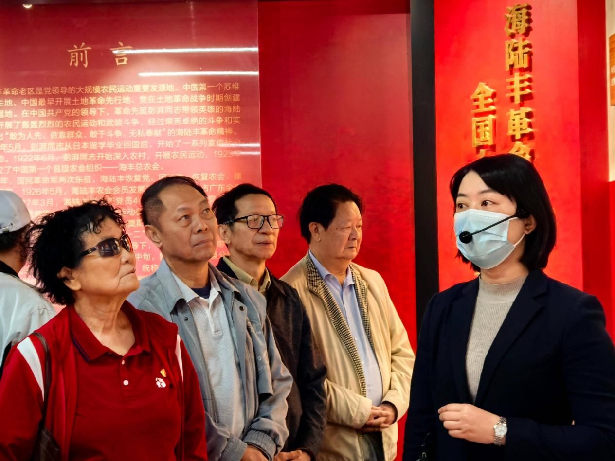 认真参观,听取纪念馆讲解员讲海陆丰革命历史。